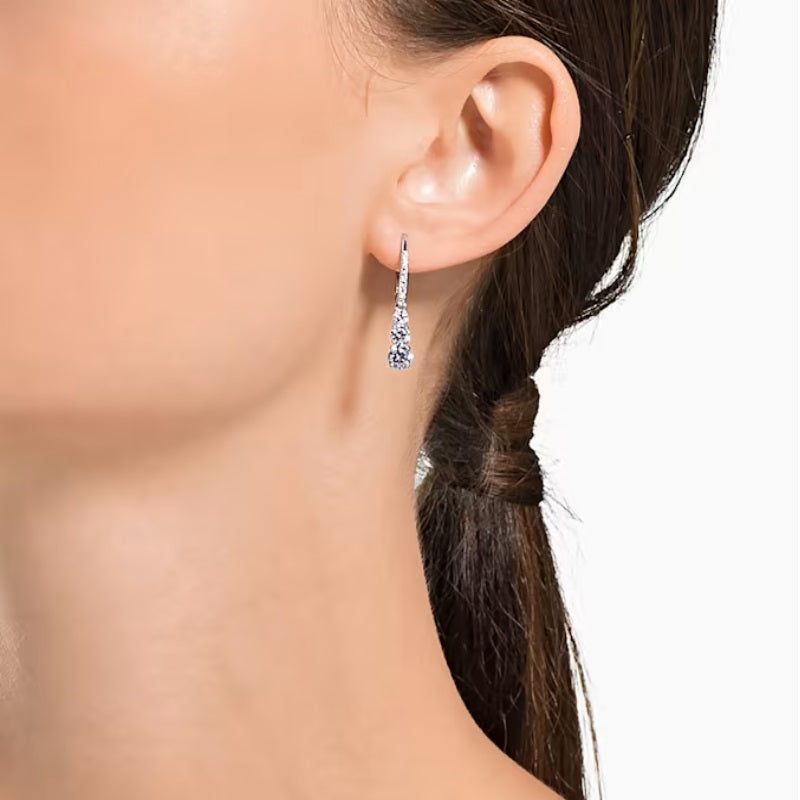 Swarovski Stilla Attract Trilogy Hoop Earrings Round Cut, White, Rhodium Plated 5416155