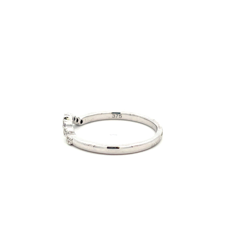 9ct White Gold Curved Diamond Set Ring 7=0.05ct